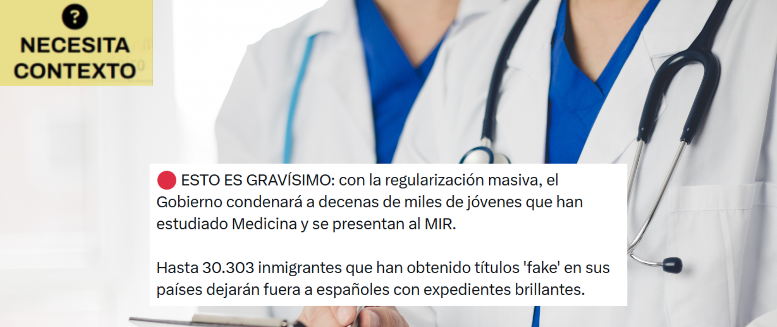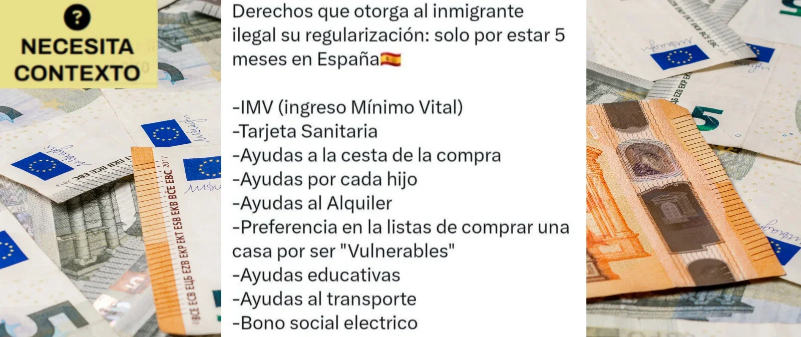 Qué sabemos sobre obtener la regularización sin presentar un certificado de antecedentes penales: el texto final exige la presentación de este documento![]() El texto definitivo de la regularización extraordinaria, aprobado por el Consejo de Ministros el 14 de abril de 2026, no incluye la posibilidad de que las personas migrantes sustituyan el certificado de antecedentes penales por una declaración responsable. Esta opción sí aparecía contemplada en el borrador del texto, pero finalmente ha sido excluida. Así, las personas interesadas en acogerse a esta regularización deberán acreditar la ausencia de antecedentes en España, en país de origen, así como en los países en los que haya residido durante los cinco últimos años anteriores a la fecha de entrada en España por medio de este certificado. El texto recogido en el BOE contempla que, si en el plazo de un mes, el país responsable de la emisión de este documento no lo ha remitido a la persona interesada, el Ministerio de la Presidencia, Justicia y Relaciones con las Cortes podrá solicitarlo por vía diplomática a la autoridad competente. Qué sabemos sobre el acceso de las personas migrantes regularizadas a pensiones de jubilación no contributivas: podrán cobrarlas después de 10 años de residencia legal en España![]() Las personas migrantes que se acojan a la regularización extraordinaria aprobada por el Gobierno, en vigor desde el 16 de abril de 2026, tendrán derecho a una pensión de jubilación no contributiva pasados diez años, ya que deben acreditar ese periodo de tiempo de residencia legal en España antes de optar a esta prestación. Además, dos años tienen que ser consecutivos e inmediatamente anteriores a la solicitud. El derecho a esta prestación, por lo tanto, no será automático. Asimismo, durante el tiempo que dure el cobro de la pensión, deberán mantener su residencia en territorio español. En cuanto a los requisitos económicos, las personas solicitantes deberán acreditar carecer de ingresos o que estos no superen los 8.803,20 euros anuales, una cantidad que se corresponde con la cuantía máxima a percibir como pensión en 2026, lo que equivale a 628,80 euros mensuales. Las pensiones de jubilación no contributivas las pueden solicitar los mayores de 65 años sin haber cotizado nunca o sin haber cotizado el mínimo de 15 años exigido para acceder a una pensión contributiva. Qué sabemos sobre las ayudas y derechos a los que pueden acceder los "inmigrantes ilegales" al regularizarse que menciona esta imagen![]() La imagen mezcla derechos que ya se reconocen a las personas migrantes en situación irregular con residencia efectiva en España, como el acceso a la sanidad en los mismos términos que los españoles, con ayudas que, además de la regularización, exigen tiempo mínimo de residencia legal en España. Este es el caso del Ingreso Mínimo Vital, que exige llevar al menos un año viviendo en España de manera regular. Otras de las prestaciones mencionadas, en cambio, sí se pueden obtener a partir de la regularización, como las ayudas al alquiler o el abono único de transportes. La acreditación de la vulnerabilidad es otro de los factores que permite a las personas, tanto españolas como extranjeras, acceder a determinadas prestaciones en igualdad de condiciones, sin preferencia por nacionalidad. Qué sabemos de los "más de 2,5 millones de extranjeros" que, supuestamente, han pedido nacionalizarse "con derecho a voto": se acogieron a la Ley de Memoria Democrática, un procedimiento distinto al de la regularización extraordinaria![]() La afirmación de que más de 2,5 millones de extranjeros o “inmigrantes” piden nacionalizarse con derecho a voto se ha vinculado con la regularización extraordinaria aprobada por el Gobierno, que el Gobierno estima que beneficiará a 500.000 personas. Pero son dos cosas distintas. Las solicitudes de nacionalización a las que se refieren los contenidos difundidos se tramitan a través de la Ley de Memoria Democrática, conocida también como ‘ley de nietos’, que aplica para descendientes de exiliados por la Guerra Civil y el franquismo y a los hijos de mujeres que perdieron la nacionalidad española al casarse. El plazo para postularse a este proceso cerró el 22 de octubre de 2025. En cambio, la regularización extraordinaria, en vigor desde el 16 de abril de 2026, está dirigida a personas inmigrantes que viven en España en situación irregular y que puedan acreditar que lo han hecho durante al menos los cinco meses anteriores al 31 de diciembre de 2025. Las personas que se beneficien de este procedimiento no obtendrán la nacionalidad española, solo una autorización de residencia y trabajo. En cuanto al derecho a voto, las personas que obtengan la nacionalidad española sí podrán ejercer su derecho a voto en España aunque residan en el extranjero. En cambio, quienes se regularicen, no tendrán automáticamente el derecho a voto. En el caso de las elecciones generales y autonómicas, solo pueden participar las personas con nacionalidad española, mientras que en las municipales pueden participar extranjeros con residencia legal en España siempre que exista un acuerdo de reciprocidad con su país de origen y cumplan con los requisitos establecidos en estos. La homologación de más de 30.000 títulos de Medicina extranjeros y la regularización extraordinaria: son procesos independientes y la homologación es de 2025![]() La regularización extraordinaria y la homologación de títulos extranjeros son procesos independientes y no están relacionados entre sí, como ha contado el Ministerio de Innovación, Ciencia y Universidades a Maldita.es. La regularización extraordinaria entró en vigor el 16 de abril, mientras que la cifra de 30.303 títulos de Medicina homologados difundida se corresponde con el año 2025, según el último informe de homologaciones presentado por el mencionado Ministerio. Esta cantidad supone casi el 8