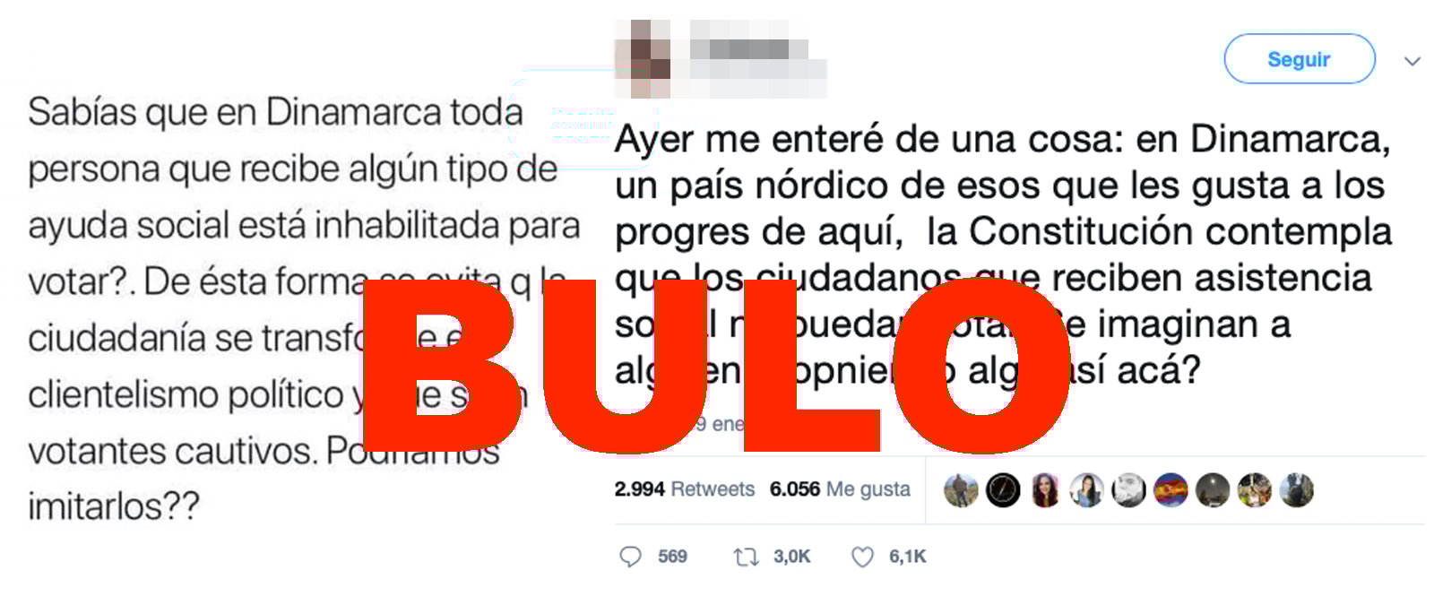No, en Dinamarca toda persona que recibe "algún tipo de ayuda social" no está inhabilitada para votar