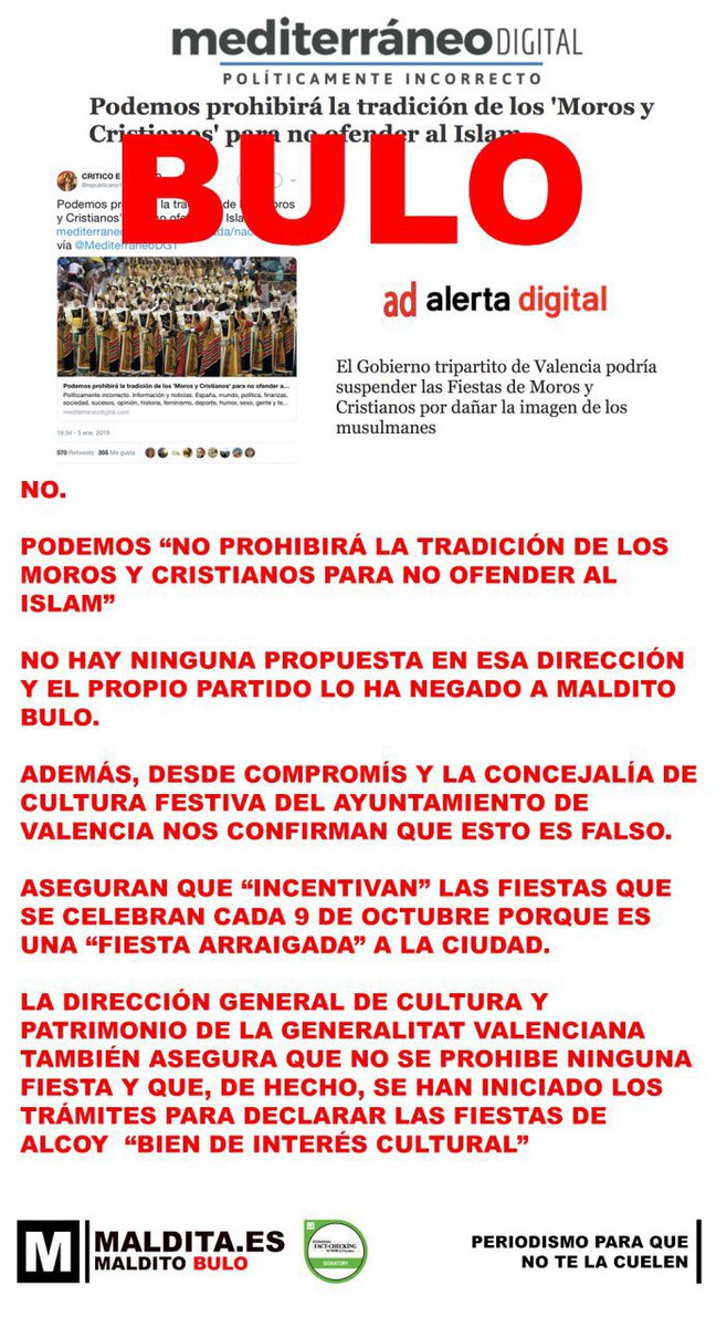 No, Podemos ni la Generalitat Valenciana prohibirán la tradición de los 'Moros y Cristianos' para "no ofender al Islam"