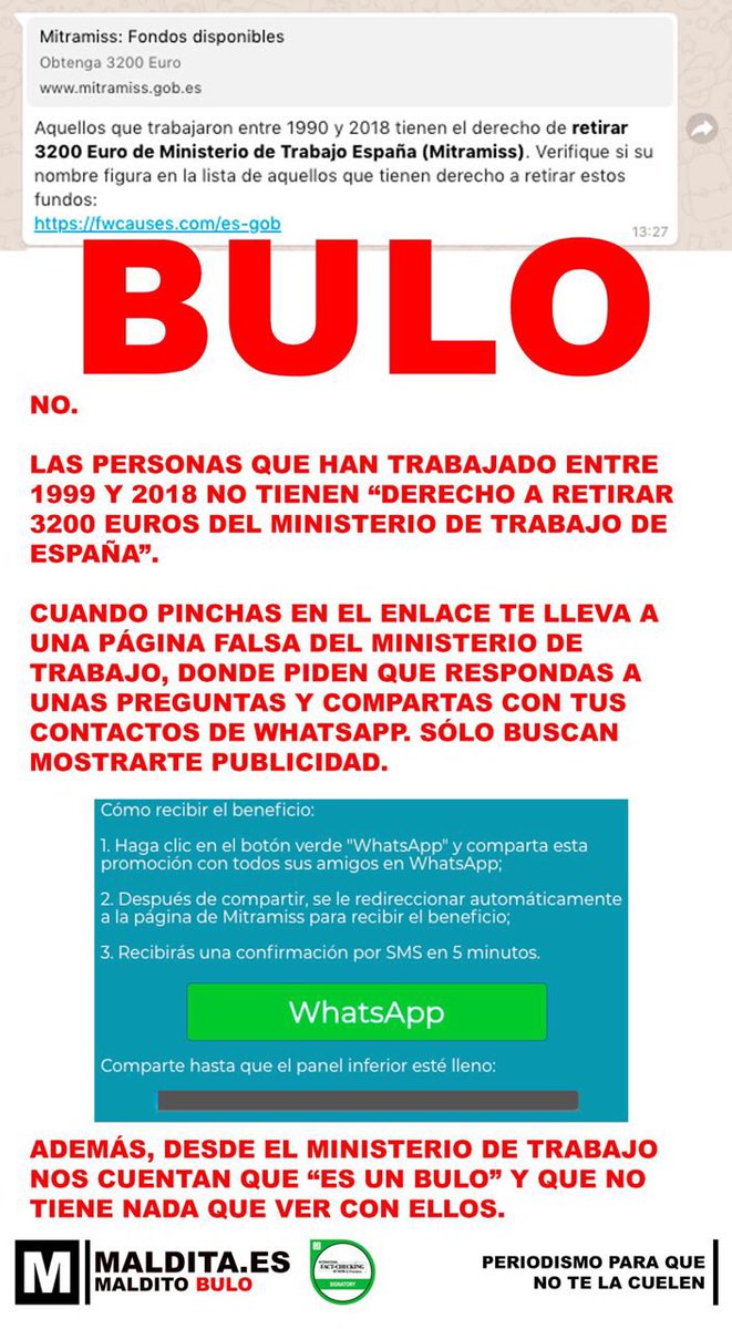 No, las personas que han trabajado entre 1999 y 2018 no tienen “derecho a retirar 3200 € del Ministerio de Trabajo