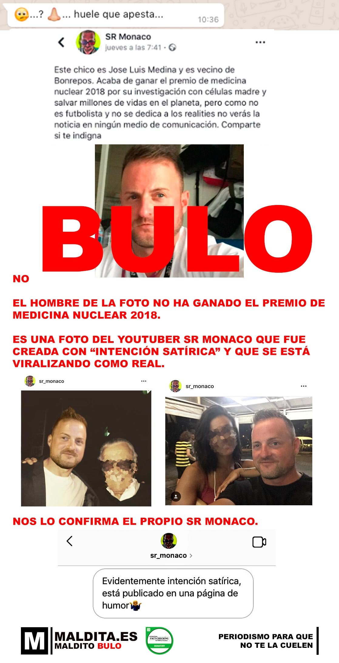 No, el hombre de la foto no ha ganado el premio de medicina nuclear 2018. Es un youtuber.
