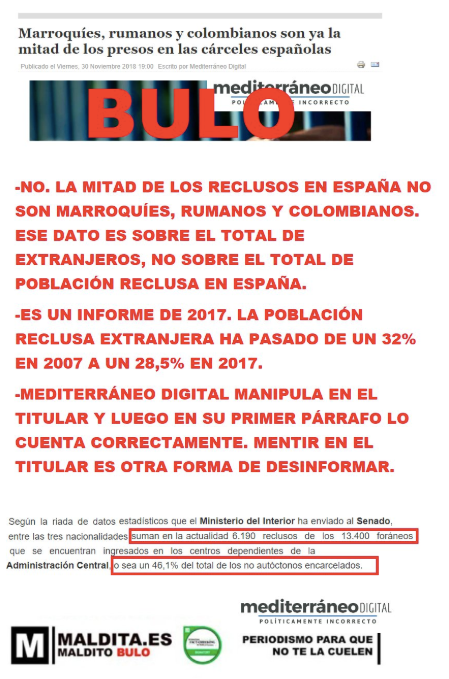 No, la mitad de los reclusos en España no son marroquíes, rumanos y colombianos