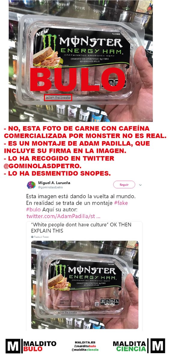 No, esta foto de carne con cafeína comercializada por Monster no es real