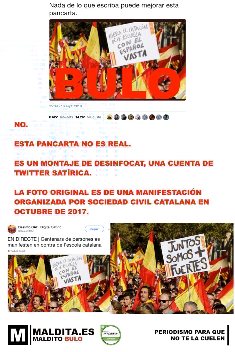 No, la pancarta que defiende el uso del español en los colegios en Cataluña con un "vasta" no es real