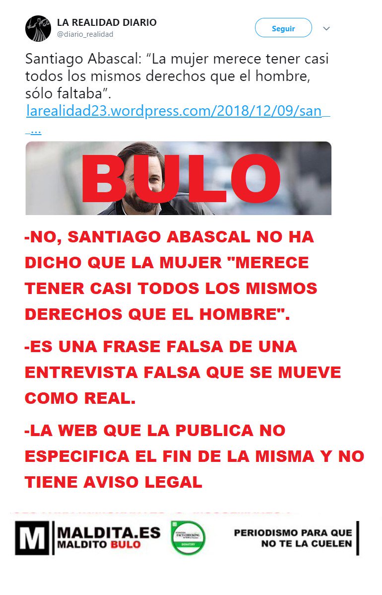 «[T] No, Abascal no ha dicho que "La mujer merece tener casi todos los mismos derechos que el hombre, sólo faltaba”»
