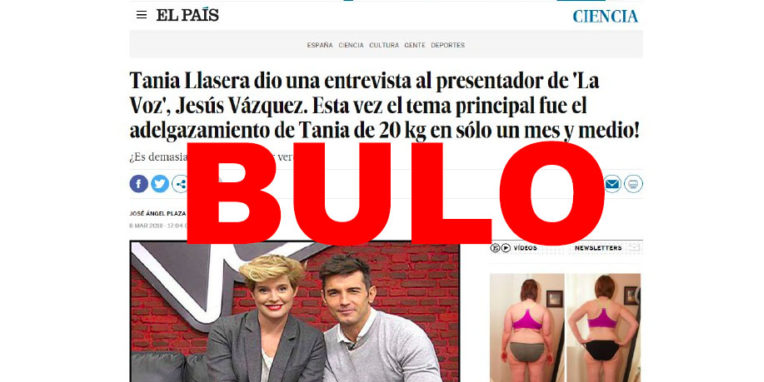 En el contenido se inventan una entrevista de Tania Llasera con Jesús Vázquez en el programa La Voz, donde supuestamente recomendó las pastillas milagrosas para perder peso, pero no hay rastro de la entrevista.