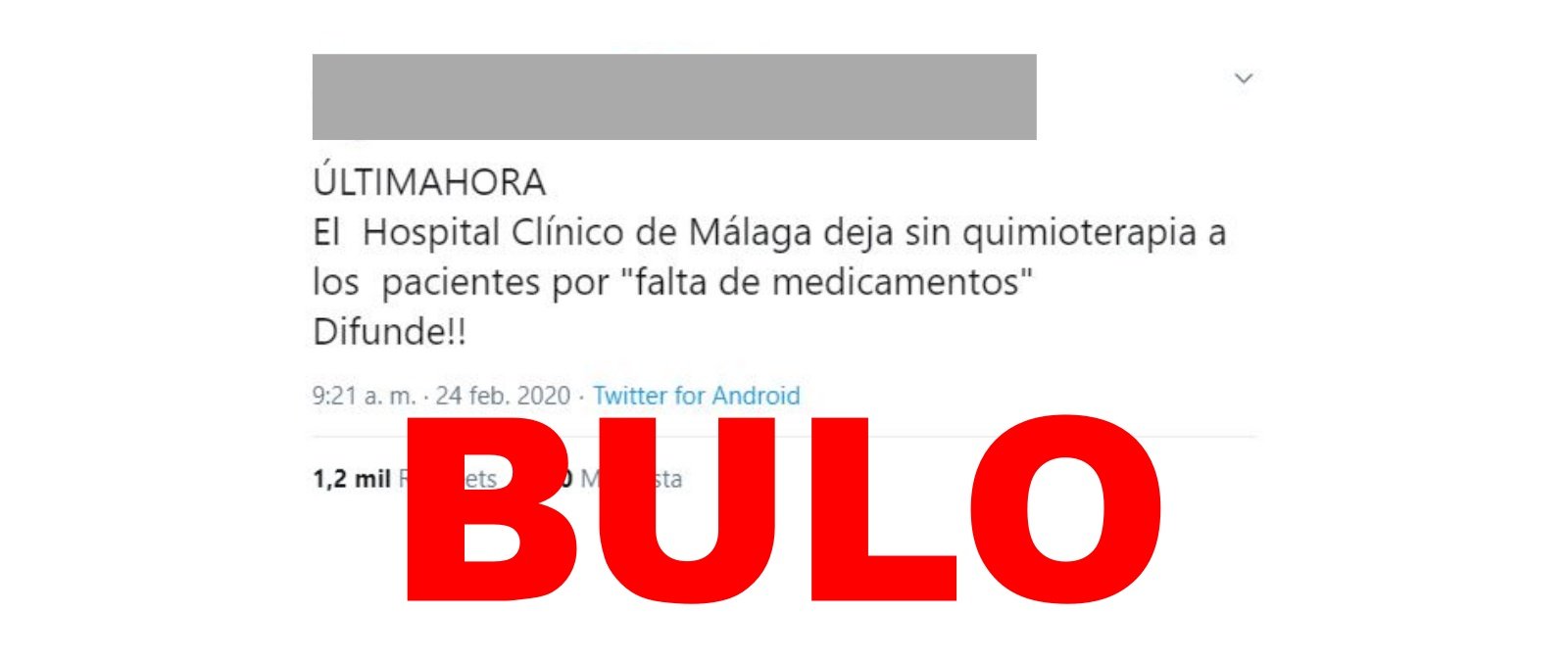 Ha vuelto a difundirse en redes un texto que afirma que el Hospital Clínico de Málaga ha dejado "sin quimioterapia a los pacientes por falta de medicamentos", pero es un bulo que nace de un caso concreto real de 2017 y que se está moviendo ahora como si fuera una "última hora".