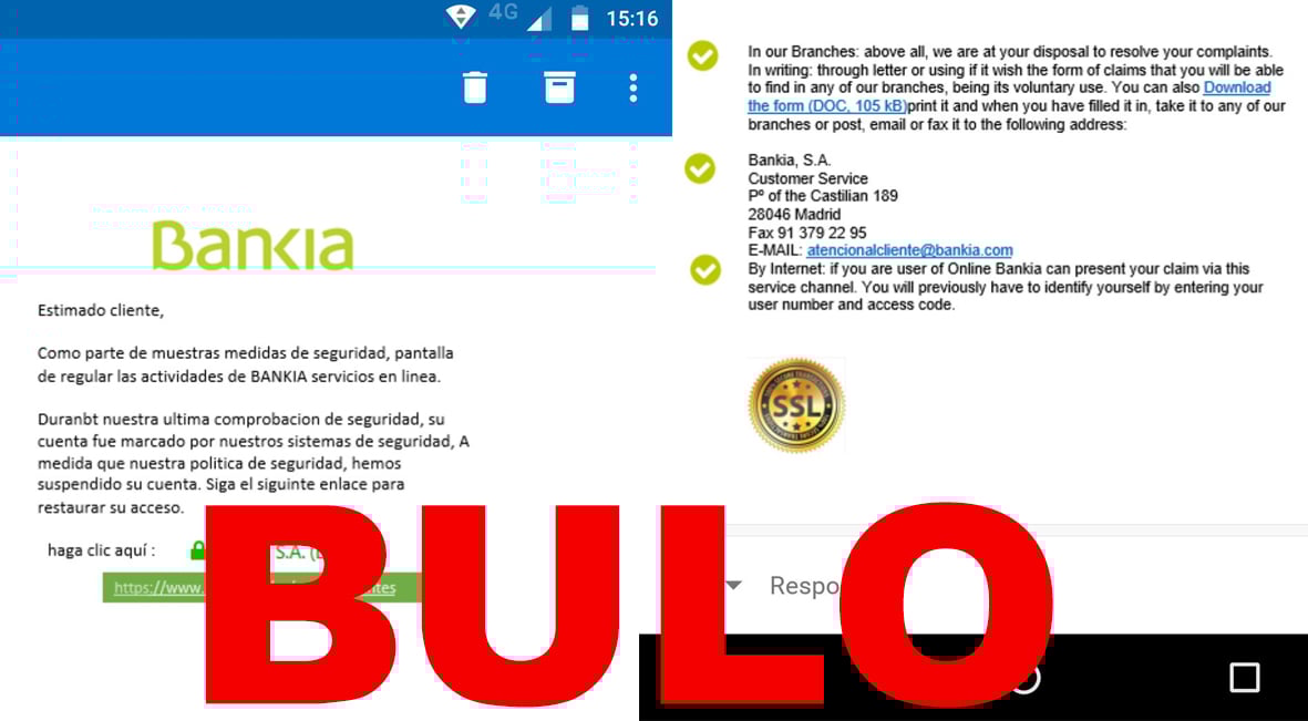 La compañía manifiesta que "se trata de un mensaje fraudulento, de una práctica conocida como phishing", un tipo de estafa que tiene el objetivo de conseguir información confidencial, como tus datos bancarios. En su web, Bankia da algunos consejos para evitar caer en estos fraudes, como una lista de buenas prácticas de seguridad.
