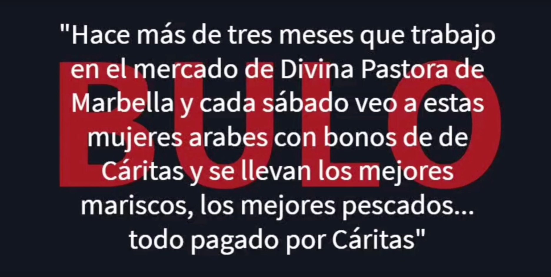 En la nota de voz una mujer cuenta que es testigo de cómo Cáritas da bonos a “mujeres árabes” para llevarse “los mejores mariscos, pescados” del Mercado de Divina Pastora de Marbella (Málaga). Esto es falso.