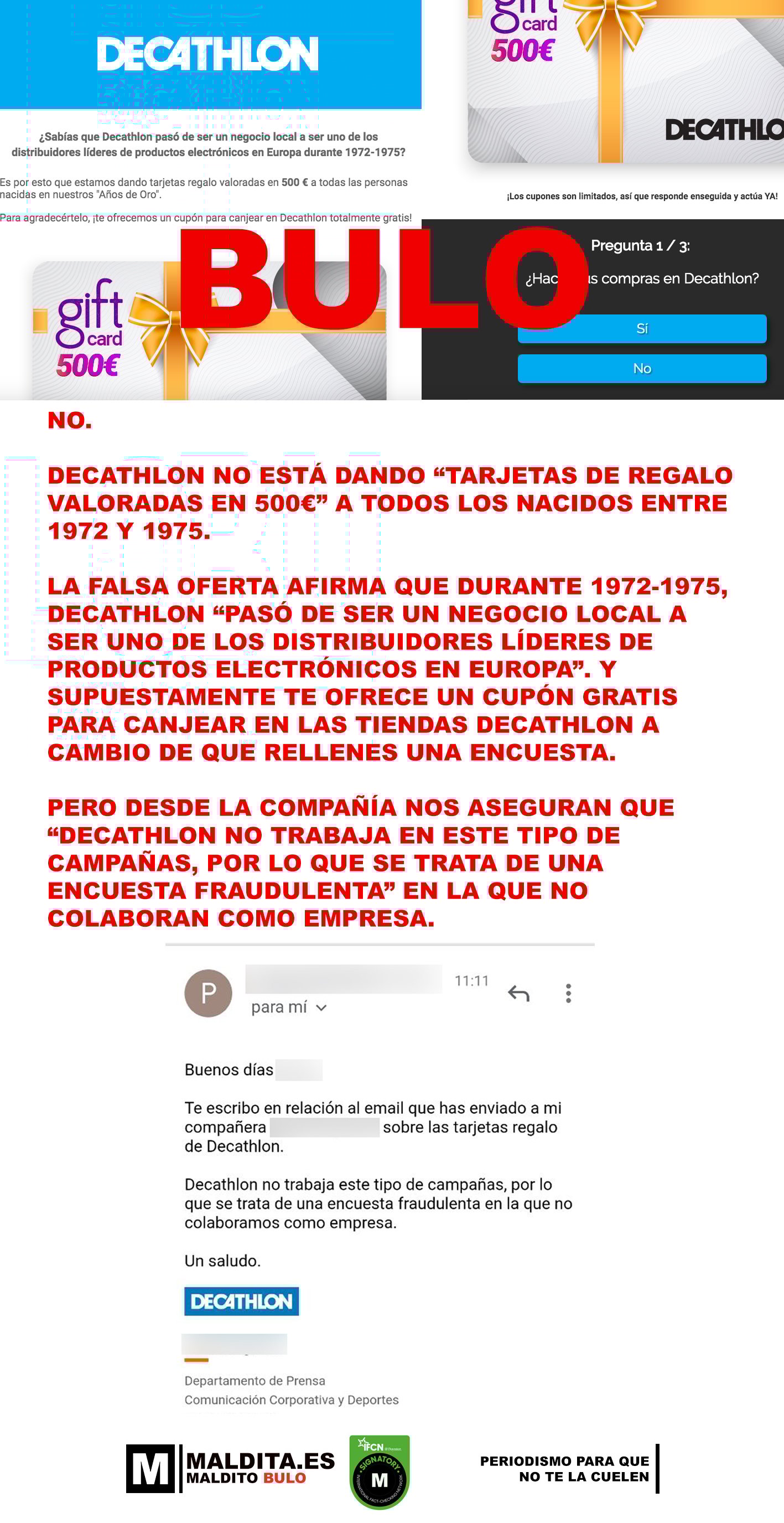 «[T] No, Decathlon no está dando "tarjetas de regalo valoradas en 500€" a todos los nacidos entre 1972 y 1975»