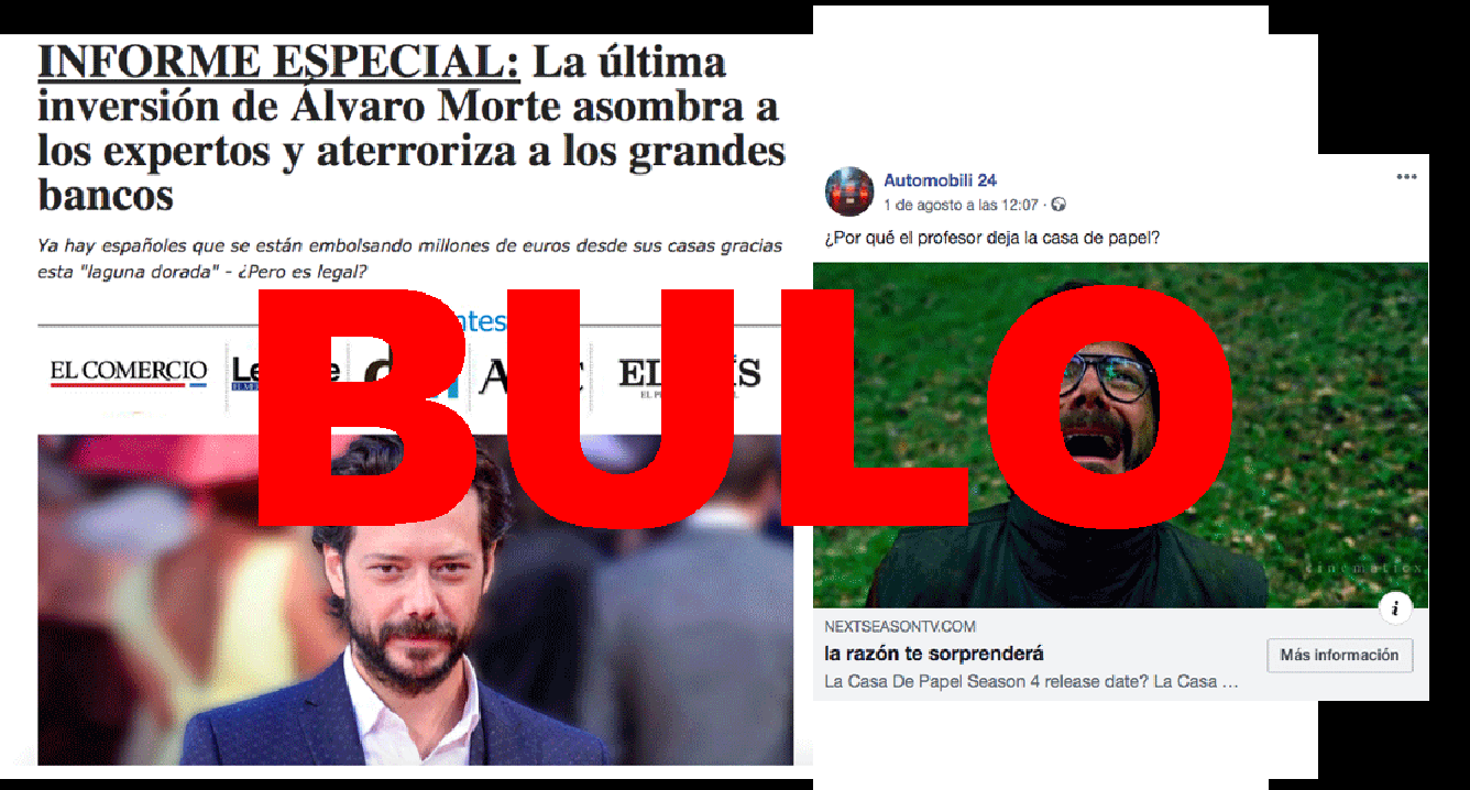 La realidad es que es un caso más del timo de las falsas inversiones en bitcoin del que os hemos hablado durante los últimos meses en Maldita.es, que utiliza a caras conocidas para atraer al mayor número de víctimas posibles. El gancho en este caso es una publicación de Facebook que incluye una captura de una escena de la serie de Netflix junto al titular: "¿Por qué 'El Profesor' deja La Casa de Papel? La razón te sorprenderá".