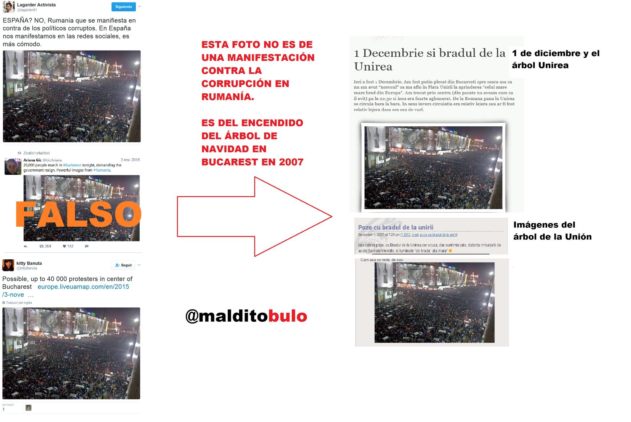 Esta foto no es de la manifestación contra la corrupción en Rumanía. Es del encendido del árbol en Bucarest en 2007.