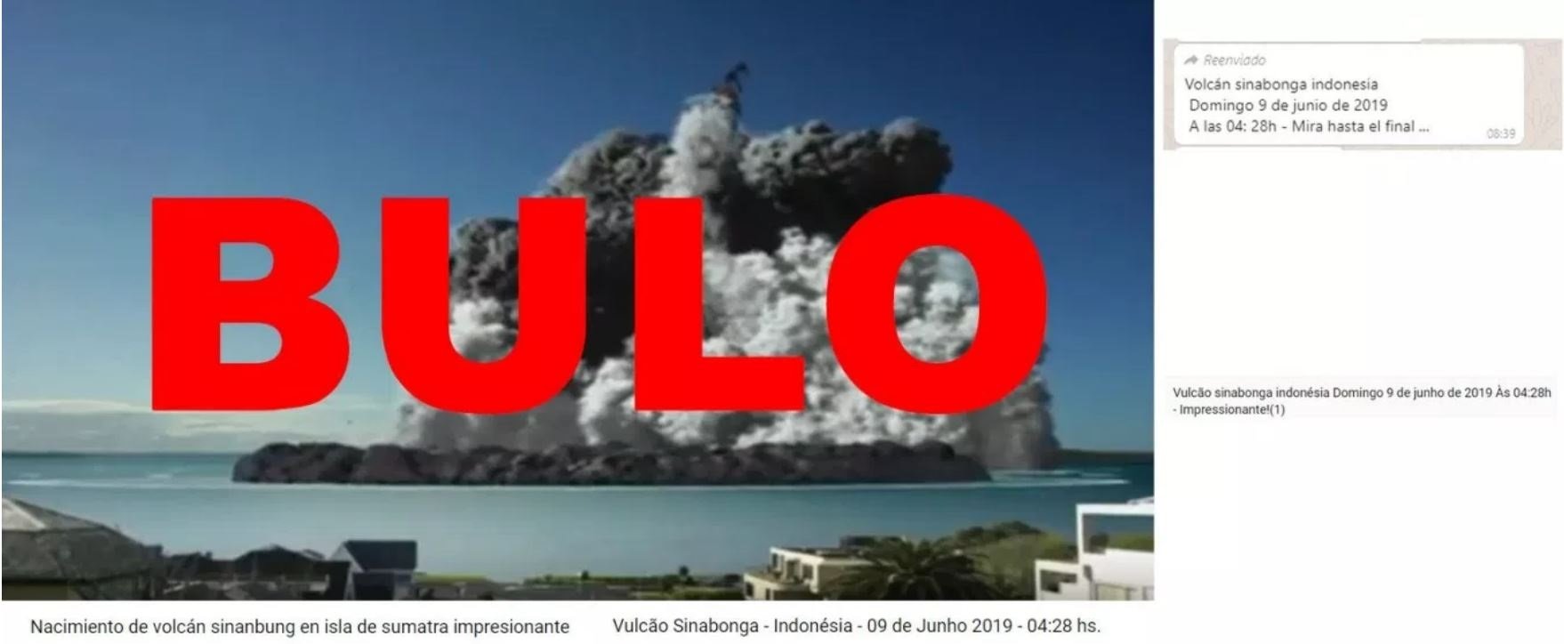 Nos habéis preguntando por un vídeo de una erupción que circula por WhatsApp y por Youtube como la erupción del volcán Sinapung o Sinabong de Indonesia el 9 de junio de 2019. Es falso. Es una simulación hecha por ordenador.