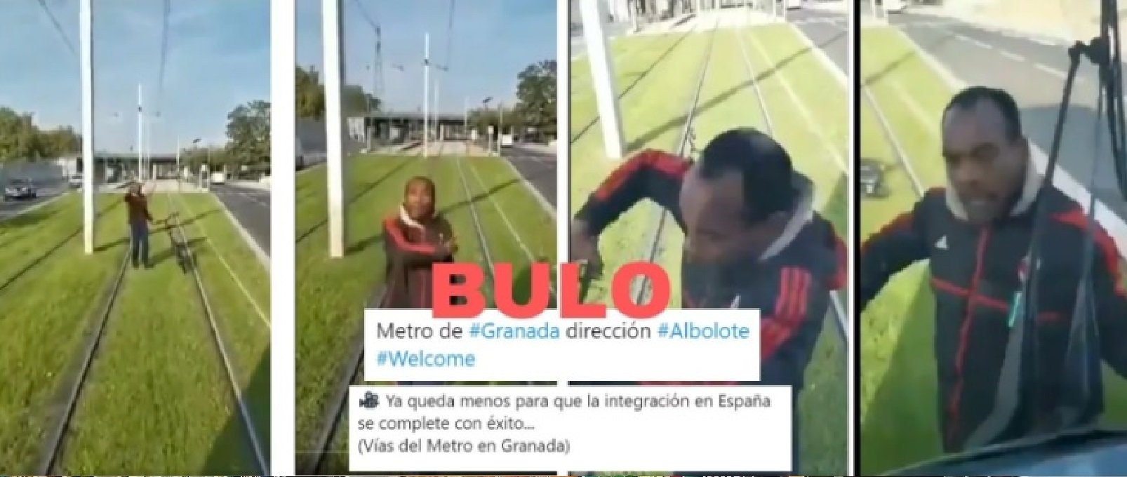 Ya lo desmentimos el año pasado y regresa este mes de septiembre este vídeo en el que se ve a un hombre bajarse de su bicicleta, discutir con el maquinista del tranvía y destrozar el parabrisas afirmando que ha sucedido en Barcelona. Ya se difundió acompañado de mensajes como "ya queda menos para que la integración en España se complete con éxito… " y "Metro de #Granada dirección #Albolote". Es un bulo. Esto no ocurre en Barcelona, ni en Granada ni en Zaragoza ni en Tenerife ni Bilbao al lado del museo Guggenheim. Ni siquiera es España. Sucedió en Francia.