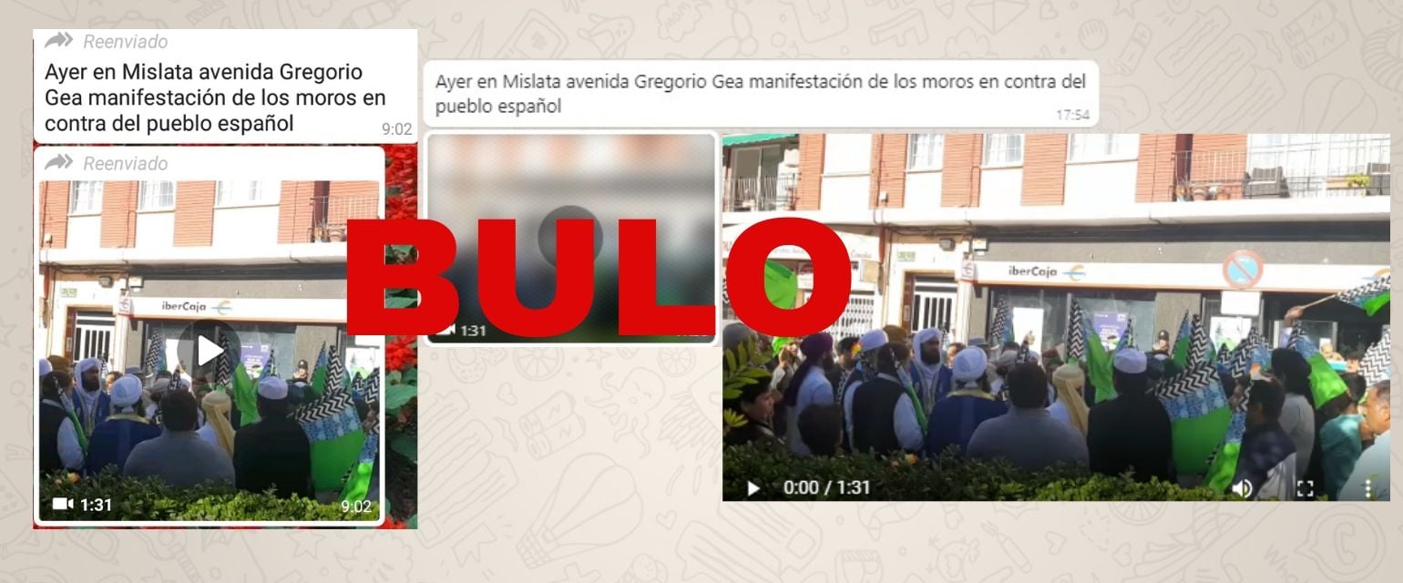 Nos habéis enviado un vídeo en el que se ve a varias personas con banderas verdes y gritando en medio de la calle junto al mensaje: "Ayer en Mislata avenida Gregorio Gea manifestación de los moros en contra del pueblo español". Esto un bulo. El evento no es "una manifestación de los moros contra el pueblo español" sino una celebración de la comunidad islámica por el cumpleaños de su profeta Mahoma. Así nos lo confirman el propio Ayuntamiento de Mislata (Valencia) y la Delegación del Gobierno en Valencia.
