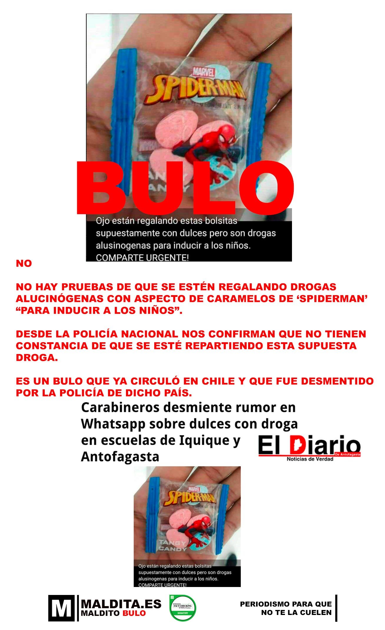 «[T] No hay pruebas de que se estén regalando drogas con aspecto de caramelos de Spiderman "para inducir a los niños"»
