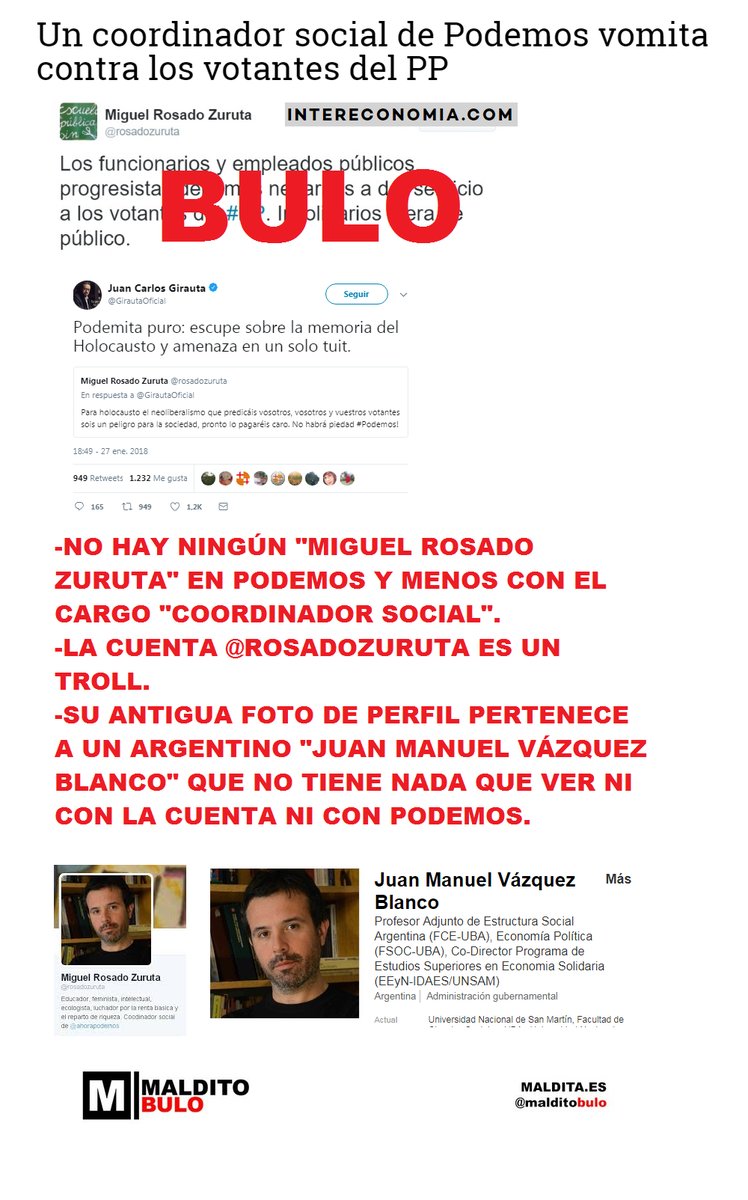 No hay ningún Miguel Rosado Zuruta en Podemos y menos con el cargo de "coordinador social".