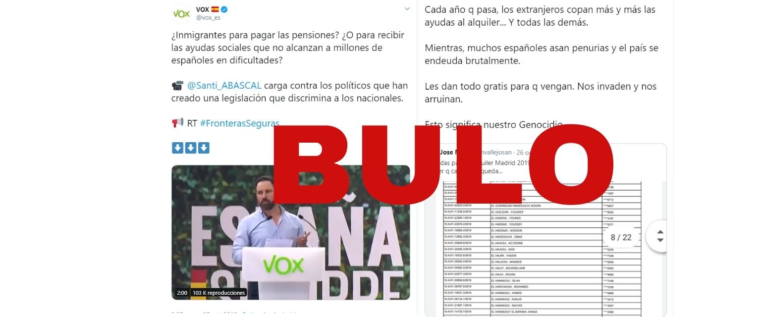 "Con VOX, los españoles no volverán a ser los últimos. Ni en la Comunidad de Madrid, ni el resto de España", es el mensaje con el que Vox ha difundido en su cuenta de Twitter una captura de una hoja del listado de listados requeridos al cobro preferentes de la ayuda al alquiler de 2019 en la que se ven varios nombres como Karim o Said. Sobre esta ayuda al alquiler ya os hablamos en 2019, cuando nos preguntasteis por unos mensajes que circularon en redes en los que se decía que "cada año que pasa, los extranjeros copan más y más las ayudas al alquiler…" y una publicación emitida por el perfil oficial de VOX en la que dicen "Santiago Abascal carga contra los políticos que han creado una legislación que discrimina a los nacionales", en referencia a las Ayudas al Alquiler de la Comunidad de Madrid 2019. Esto es un bulo.