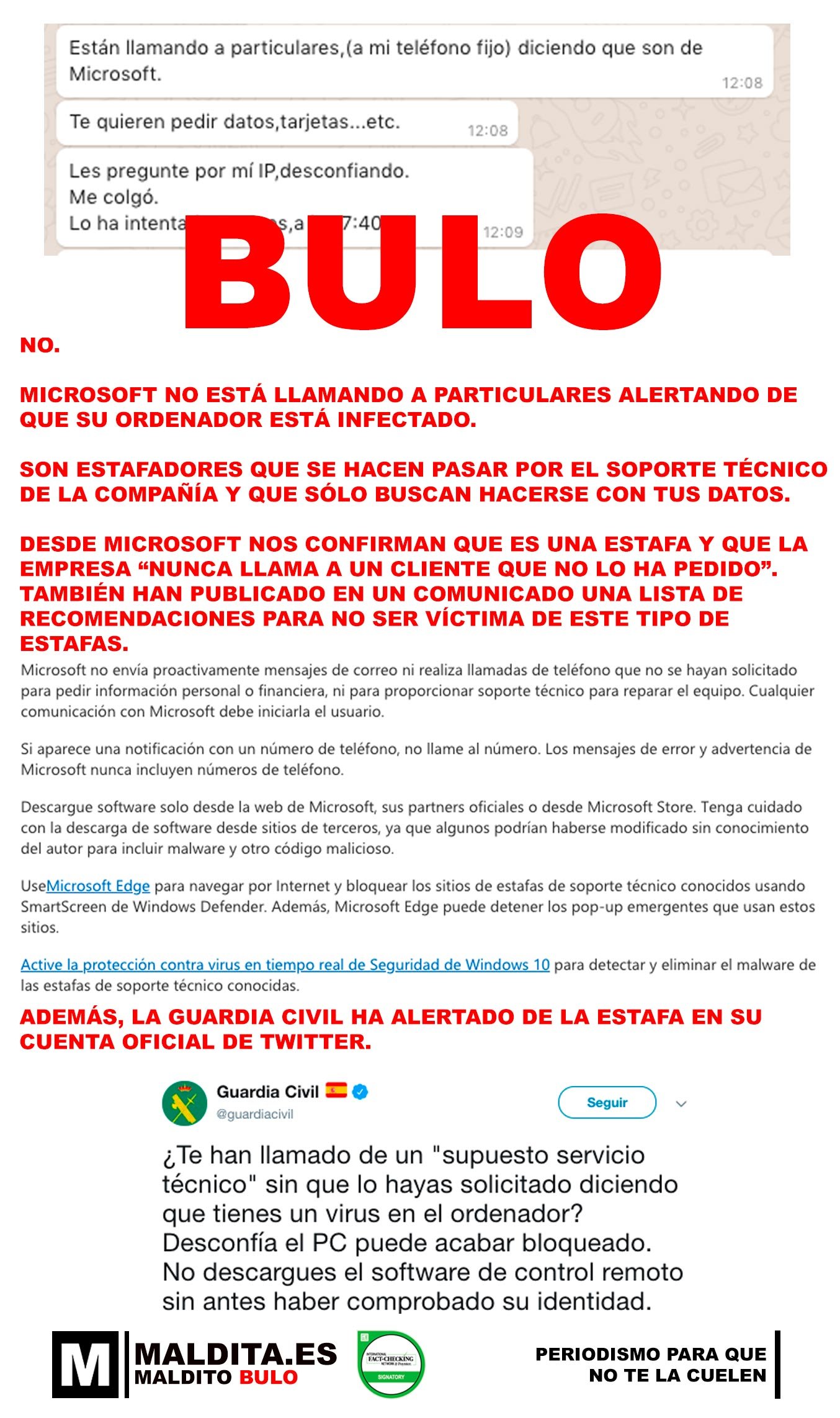 - Desde Microsoft nos confirman que es una estafa y que la empresa "nunca llama a un cliente que no lo ha pedido". También han publicado en un comunicado una lista de recomendaciones para no ser víctima de este tipo de estafas.