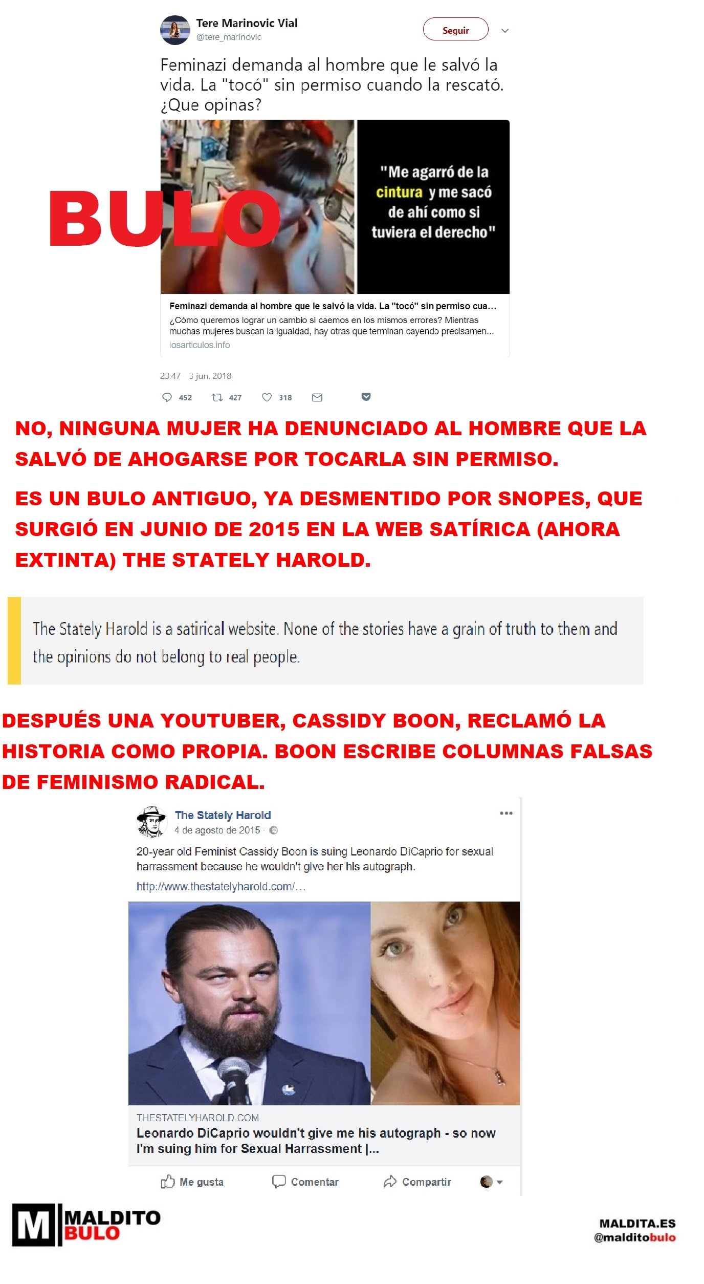 - Después, una Youtuber (Cassidy Boon) reclamó la historia como propia. Boon escribe columnas falsas de feminismo radical.
