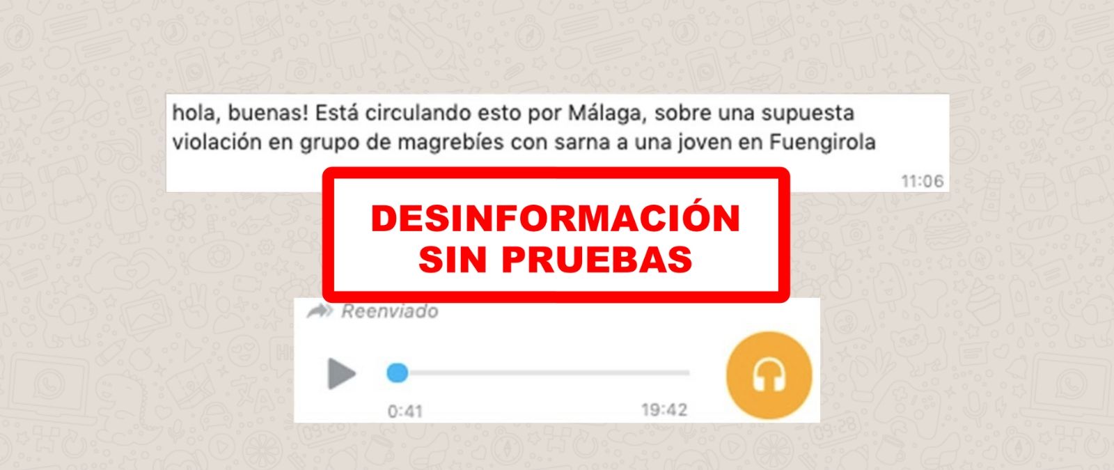 Nos habéis enviado un audio a través de Whatsapp (655 19 85 38) en el que un hombre cuenta que se ha detenido a "14 magrebíes" que han agredido "a una chavala que iba en busca de su novio y al novio cuando ha dado la cara le han apuñalado". Después, añade que "han detenido a los 14 hijos de puta y los han tenido que aislar porque vienen con sarna". El mensaje se mueve como si hubiera sucedido en Fuengirola (Málaga). Sin embargo, no hay pruebas de que estos hechos hayan ocurrido a fecha de esta publicación.*