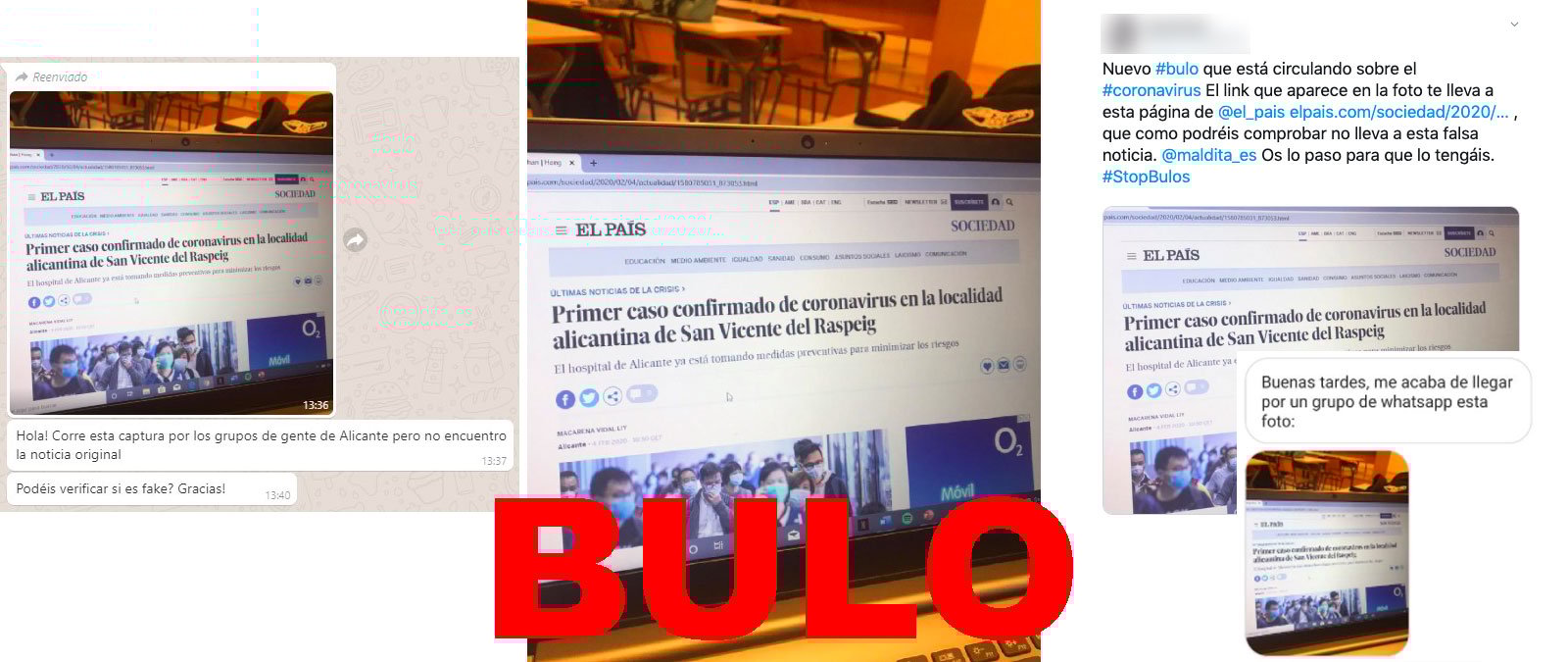Nos habéis preguntado por WhatsApp, Twitter e Instagram por una captura de una supuesta noticia de El País en la que se asegura que se ha confirmado un caso de coronavirus en San Vicente del Raspeig (Alicante). Es un bulo: El País no ha publicado ese contenido y a fecha de 5 de febrero no se ha detectado ningún caso de coronavirus en dicho municipio. Además, el Ayuntamiento lo ha desmentido.