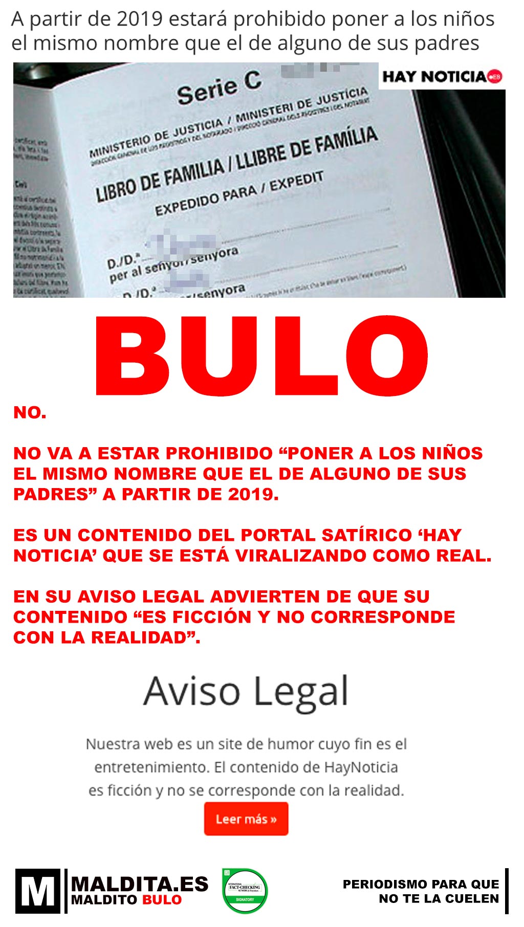 «[T] No, no va a estar prohibido poner a los niños el mismo nombre que el de alguno de sus padres a partir de 2019»