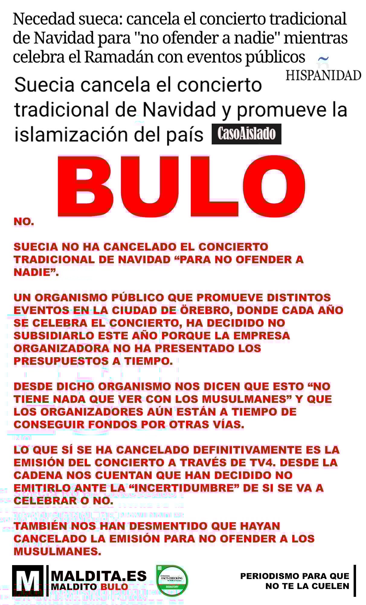 «[T] No, Suecia no ha cancelado el concierto tradicional de Navidad "para no ofender a nadie"»