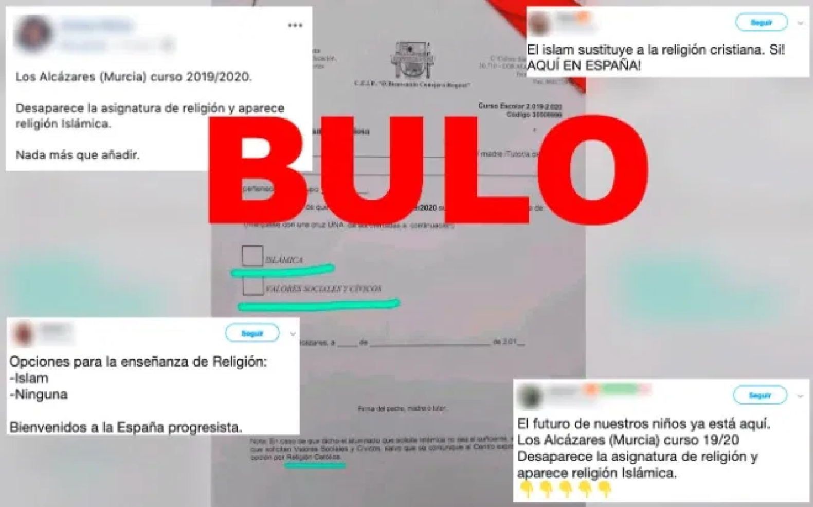 Antes del documento que ahora se está difundiendo ya se había elaborado otro que sí incluía la asignatura de religión católica. Además, el que ofrecía la enseñanza islámica no se llegó a enviar. Desde la Consejería de Educación de la Región de Murcia nos dicen que "en ningún centro de Murcia se ofrece la enseñanza islámica" y que "absolutamente en todos se oferta la católica".