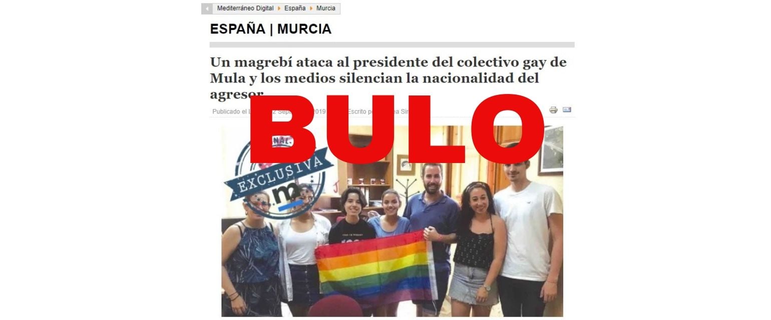 La web Mediterráneo Digital ha asegurado en su cabecera y ha vendido como un contenido en "exclusiva" que "un magrebí ataca al presidente del colectivo gay de Mula y los medios silencian la nacionalidad del agresor".