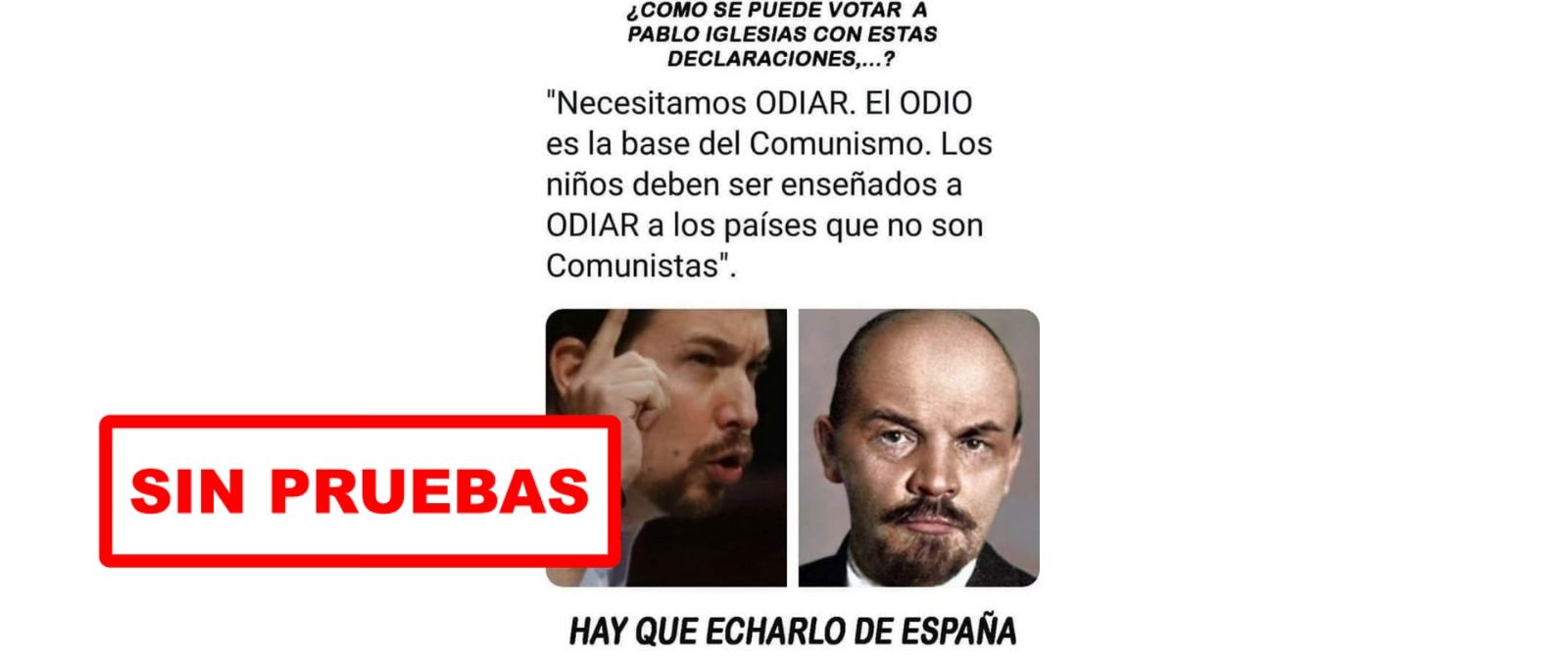 «Pablo Iglesias declara: Necesitamos odiar. El odio es la base del comunismo. Los niños deben ser enseñados a odiar a los países que no son comunistas»