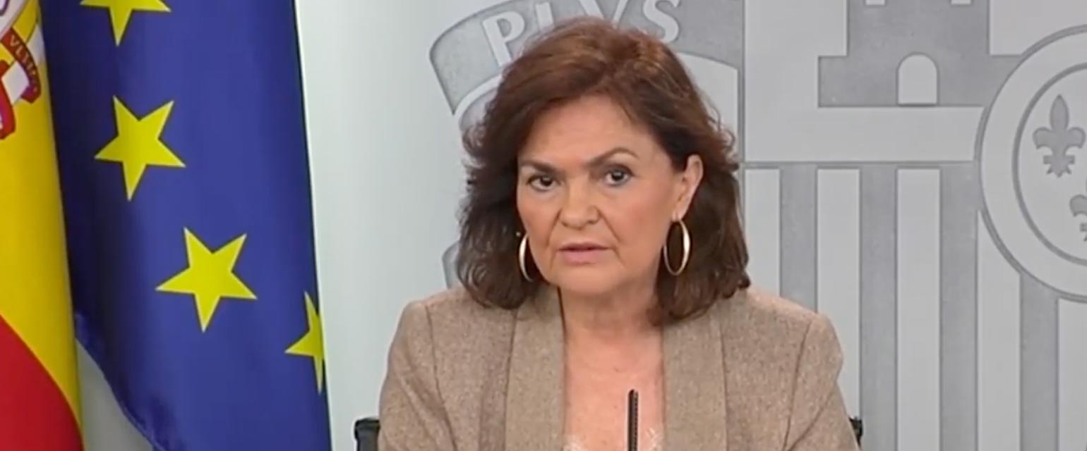 Ante las preguntas de los periodistas sobre las declaraciones de Pedro Sánchez en mayo, la vicepresidenta ha matizado que entonces Sánchez no era Presidente del Gobierno: "Nosotros somos Gobierno ahora".