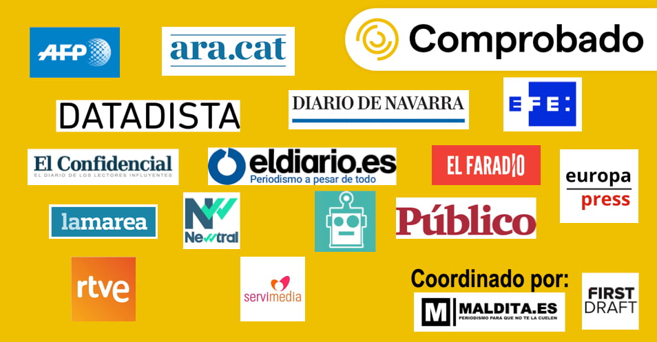 AFP, Ara, Datadista, Diario de Navarra, EFE, El Confidencial, eldiario.es, El Faradio, Europa Press, La Marea, Newtral, Politibot, Público, RTVE, Servimedia y Maldita.es.