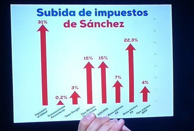 Pablo Casado enseñó en el debate electoral de Atresmedia un gráfico que decía que Pedro Sánchez había propuesta una subida de impuestos del diésel de un 31%.