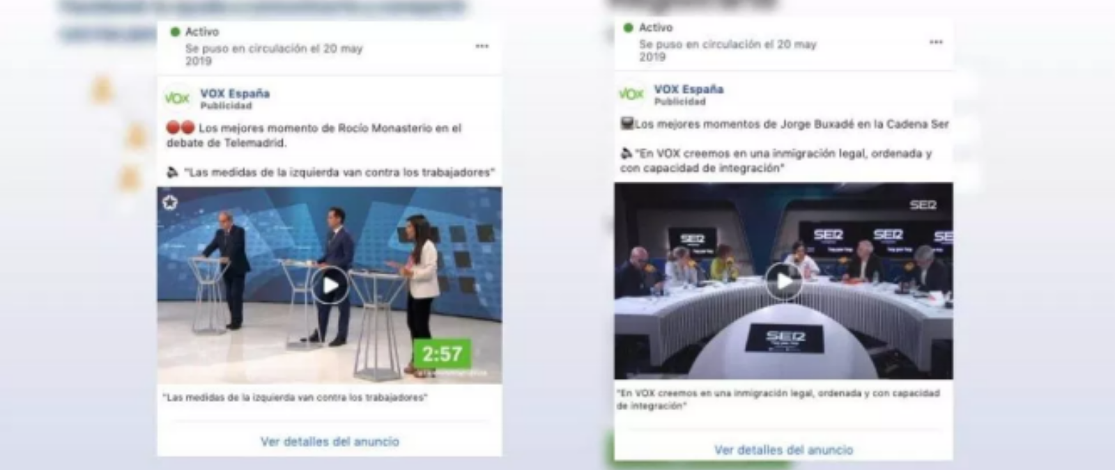 Vox ha incumplido durante la campaña de las elecciones del 26 de mayo la política de publicidad de Facebook que obliga a los partidos a etiquetar sus anuncios como contenido político, lo que ha provocado que la publicidad de la formación se haya mostrado sin la transparencia que la plataforma exige para los anuncios electorales. Después de que Maldita.es preguntara a Facebook por esta cuestión, algunos de los anuncios de Vox aparecen como inactivos y otros han desaparecido de la biblioteca de anuncios.