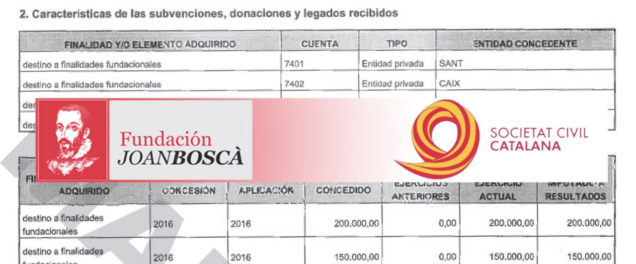 Estas donaciones de entidades privadas se realizaron a la Fundación Joan Boscà que después derivó estas cantidades a Societat Civil Catalana, según se puede ver en las cuentas anuales de la fundación del año 2016, solicitadas por Maldita.es al Registro de Fundaciones.