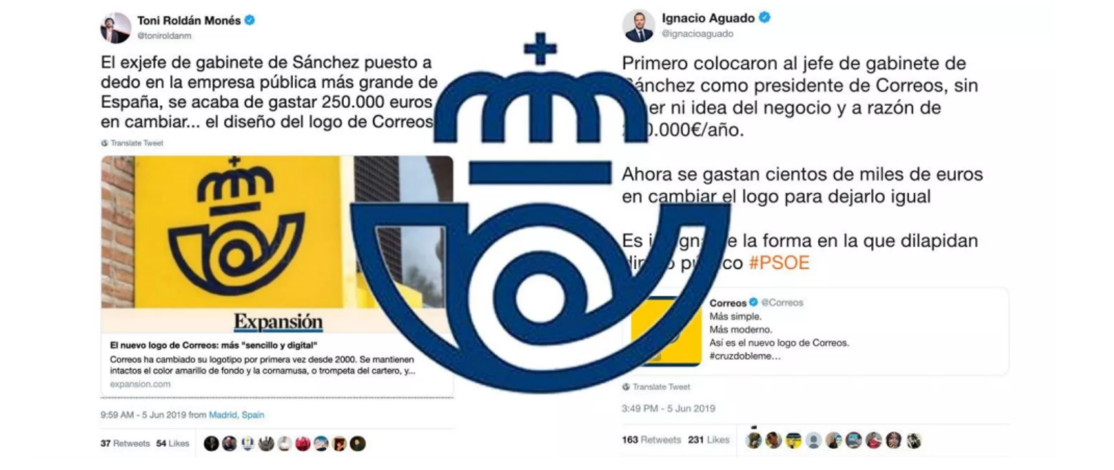 El portavoz adjunto de Ciudadanos en el Congreso de los Diputados, Toni Roldán, ha dicho en Twitter que "el exjefe de gabinete de Sánchez puesto a dedo en la empresa pública más grande de España, se acaba de gastar 250.000 euros en cambiar… el diseño del logo de Correos". Pero no ha sido el único dirigente de Ciudadanos que ha asegurado algo parecido. El candidato a la Comunidad de Madrid de la formación de Albert Rivera, Ignacio Aguado, ha defendido también en Twitter que "primero colocaron al jefe de gabinete de Sánchez como presidente de Correos, sin tener ni idea del negocio y a razón de 200.000 euros al año. Ahora se gastan cientos de miles de euros en cambiar el logo para dejarlo igual".
