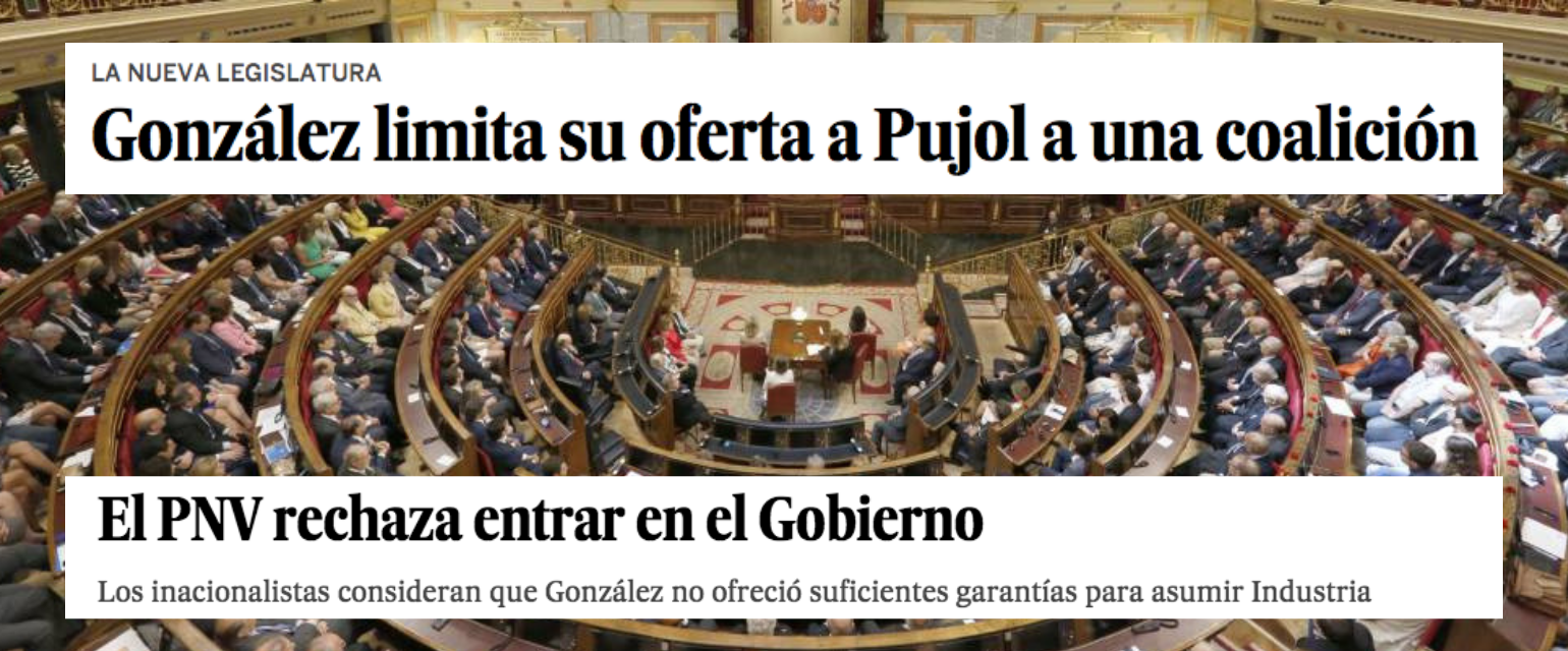 La Vanguardia explicó el 11 de julio de 1993 en su portada que el PNV rechazaba el gobierno de coalición propuesto por González.