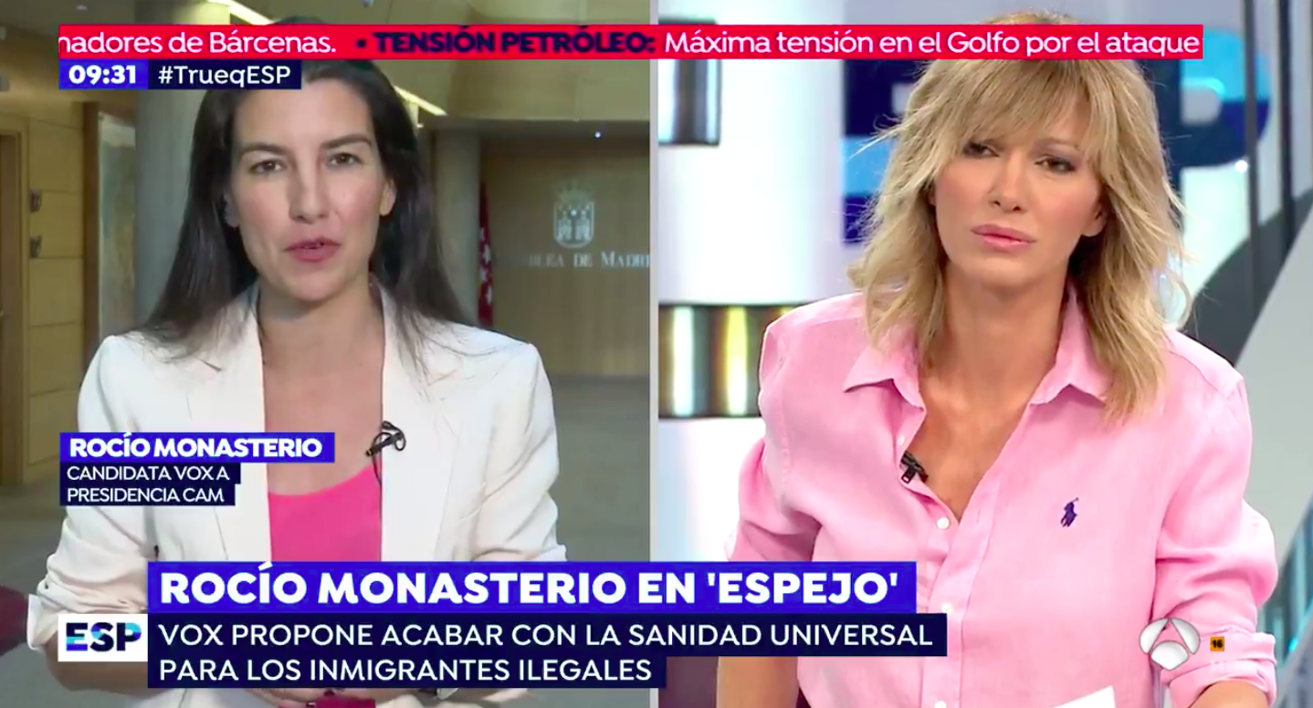 La líder de Vox en la Comunidad de Madrid, Rocío Monasterio, dijo en una entrevista en Espejo Público que puedes venir a Madrid a operarte “de cualquier parte del mundo [...] y esa factura no se manda a tu país de origen” y que tras saltar la valla de Melilla se te entrega “automáticamente [...] una tarjeta de sanidad universal”, pero ambas afirmaciones son falsas. Os las explicamos: