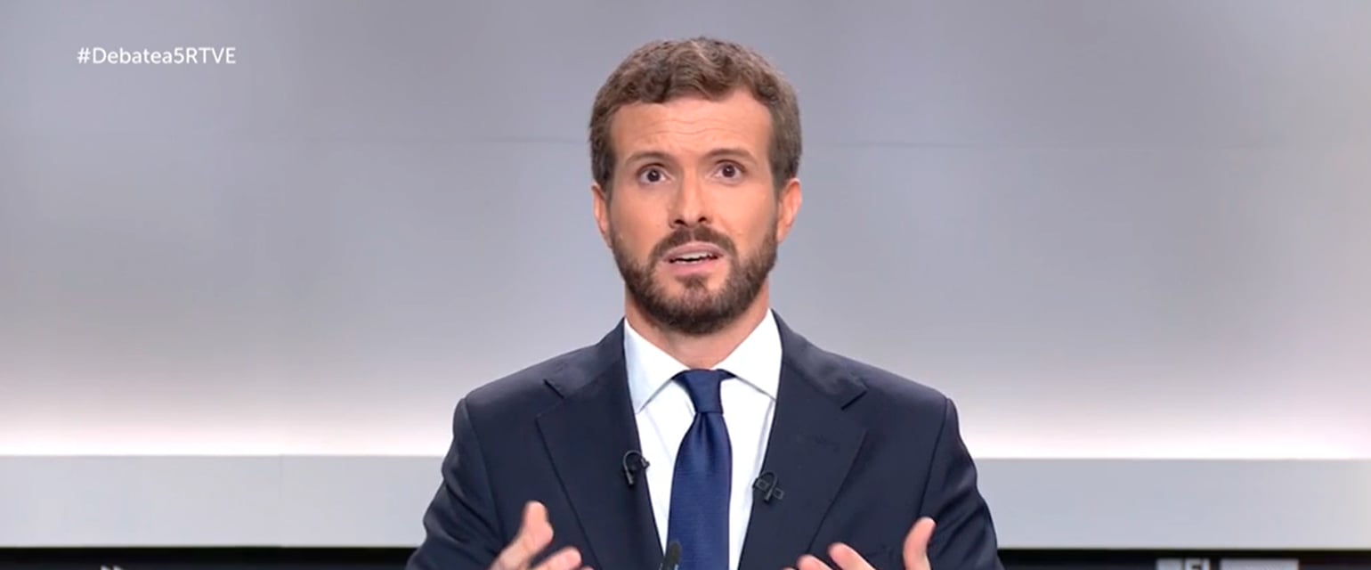Pablo Casado dijo a Pedro Sánchez durante el debate electoral a cinco organizado por la Academia de Televisión previo a las generales del 10-N que "¿qué hizo usted en Pedralbes, señor Sánchez?, ¿por qué no ha retirado la declaración de Pedralbes en la que se decía que hacía falta un relator internacional, en la que se decía que la monarquía era franquista?”.