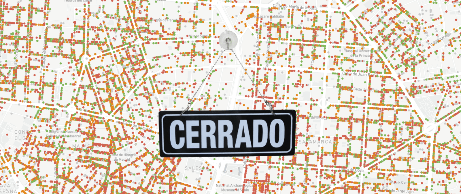 Hemos filtrado la base de datos del censo de locales de Madrid a febrero de 2020. Solo hemos seleccionado aquellos que están abiertos actualmente y aquellos cuyo epígrafe de actividad es distinto de “Sin actividad”. Puedes consultar la clasificación de epígrafes de actividad que hemos realizado aquí.