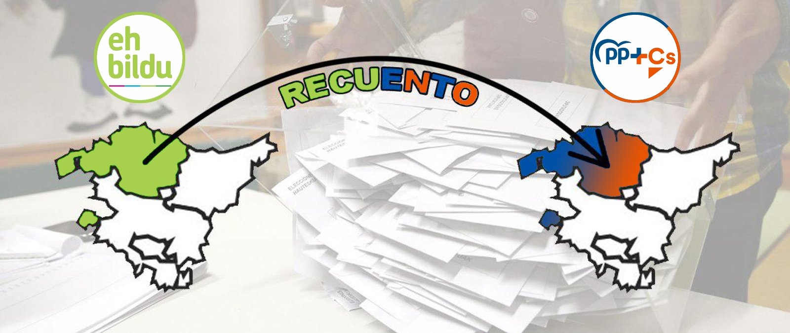 Tras el recuento del voto extranjero (CERA) y las reclamaciones de actas* que se ha realizado el 17 de julio, la coalición de PP y Ciudadanos ha arrebatado un escaño a EH-Bildu en Bizkaia, tal y como publica el diario El Correo.