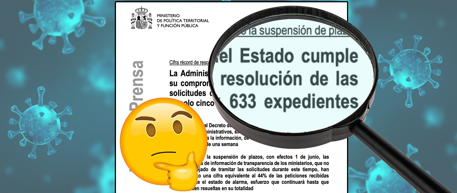 El Ministerio de Política Territorial y Función Pública llegó a afirmar en una nota de prensa que el Gobierno había resuelto entre el 1 y el 5 de junio 633 solicitudes de información pública realizadas por los ciudadanos durante la suspensión de plazos administrativos por el estado de alarma. Pero no fue así. En esos cinco días la Administración General del Estado (AGE) sólo resolvió 305 de las peticiones recibidas durante la suspensión de plazos, menos de la mitad de la cifra que daba el Gobierno.