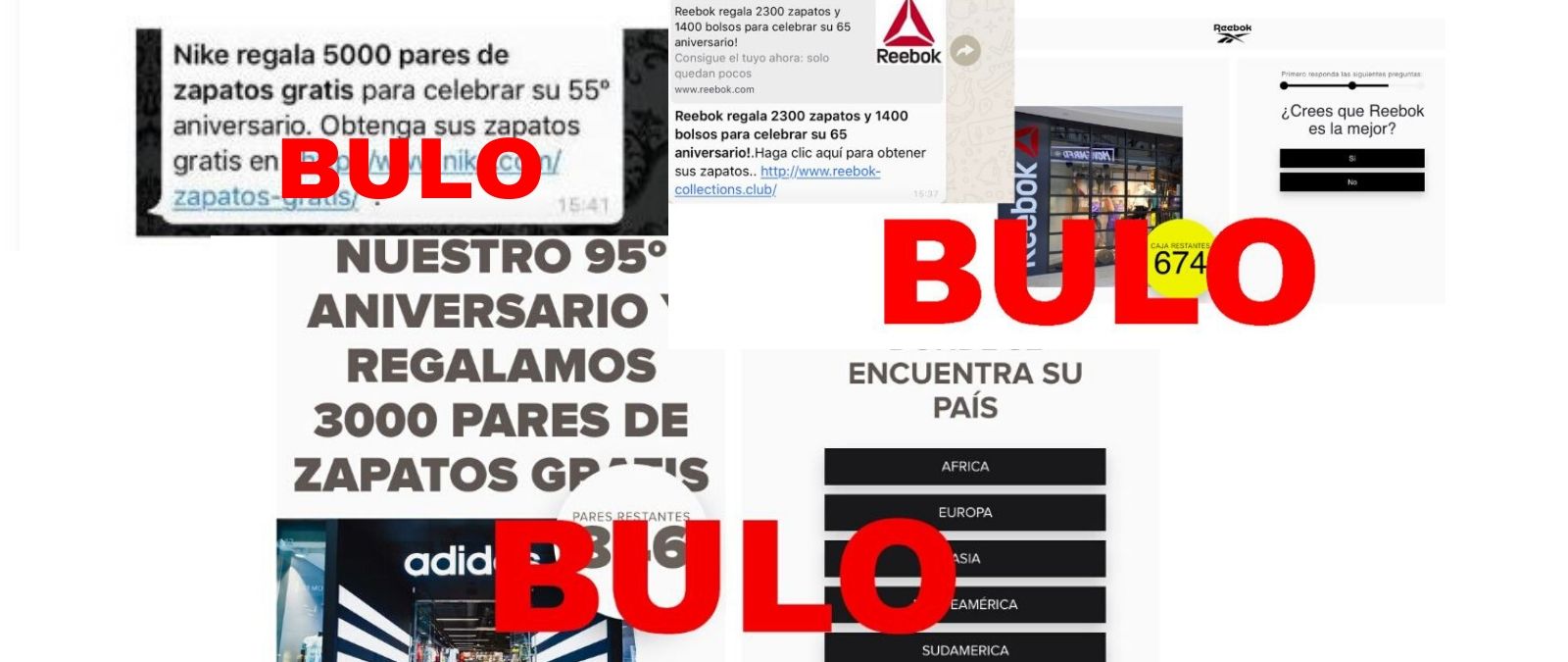Cada cierto tiempo nos preguntáis sobre supuestos sorteos donde empresas importantes regalan zapatos y otras prendas por "su aniversario". Es un bulo. No son cuentas oficiales que copian la identidad visual de las compañías con el objetivo de quedarse con tus datos sensibles, una técnica que se conoce como phishing. En este recopilatorio te contamos varios casos que hemos desmentido: