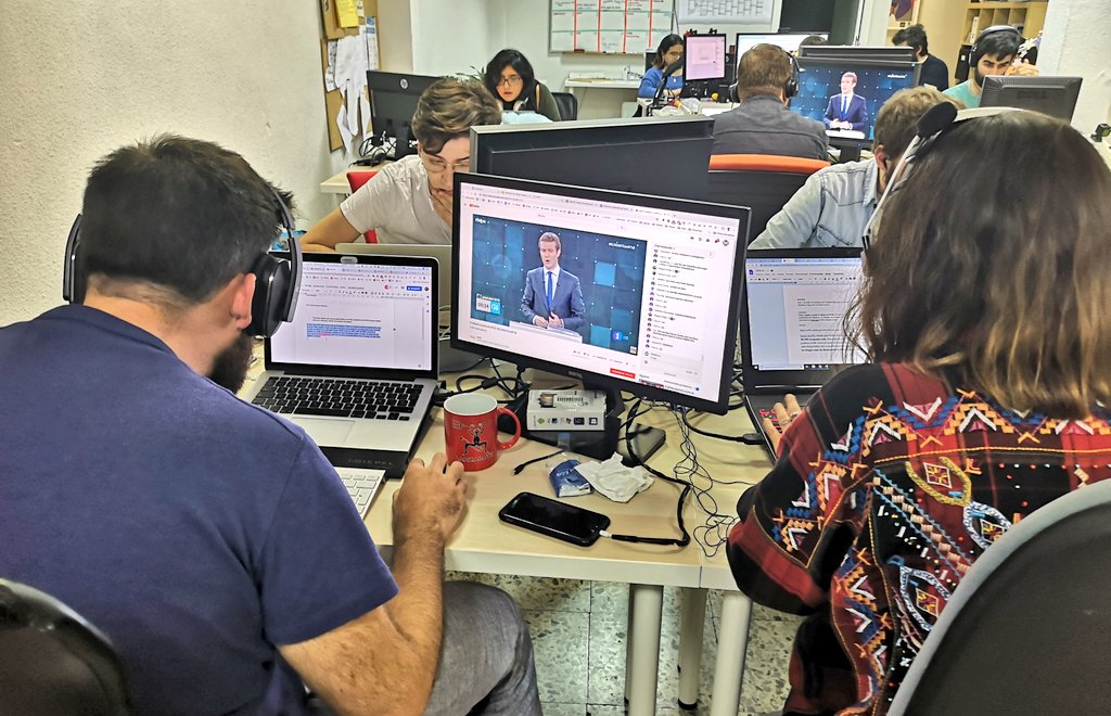 Los compañeros de Maldito Dato, expertos en verificación política, lideraron el equipo ambas noches. Ellos son los que escuchan cada día las intervenciones de los políticos, por lo que son los que mejor conocen los temas de los que suelen hablar los candidatos y los datos que suelen utilizar –falsos o no–, y tienen bases de datos preparadas para agilizar todo lo posible la verificación.