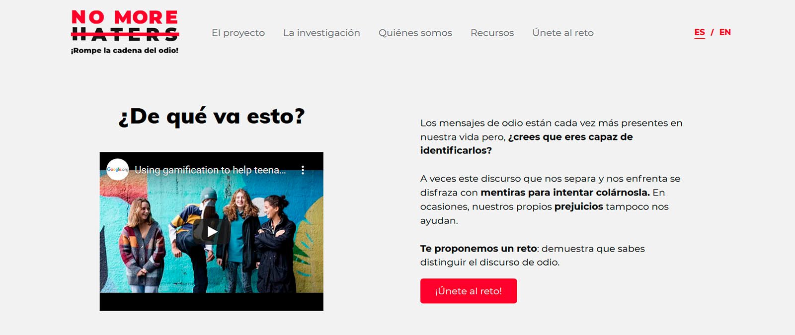 El proyecto, que cuenta con la web www.nomorehaters.es, contempla la realización de una investigación sociológica para conocer las actitudes y posturas de los y las jóvenes sobre los discursos de odio en la red, dado que es una población con un uso de Internet y redes sociales muy elevado, a la vez que son usuarios y usuarias especialmente vulnerables.