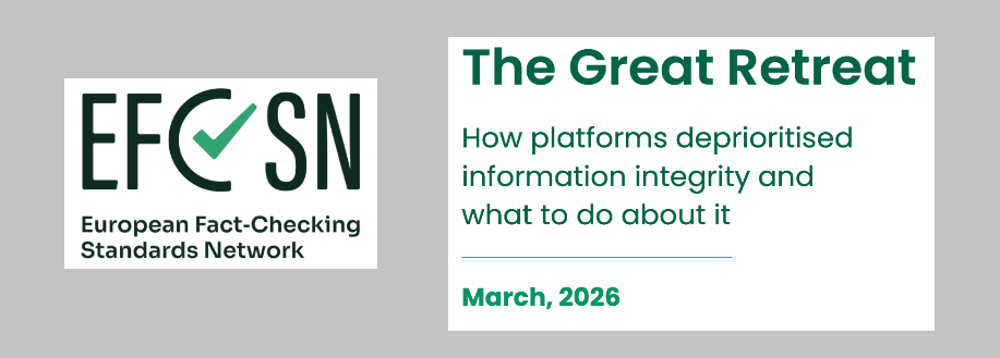 La mayoría de las grandes plataformas digitales son hoy espacios más peligrosos y manipulativos que hace unos años, y las empresas que las sostienen muestran menos interés que antes en proteger a sus usuarios. Esas son las principales conclusiones de “La Gran Retirada”, el informe que ha publicado la asociación europea de organizaciones de verificación EFCSN a la que pertenece la Fundación Maldita.es: