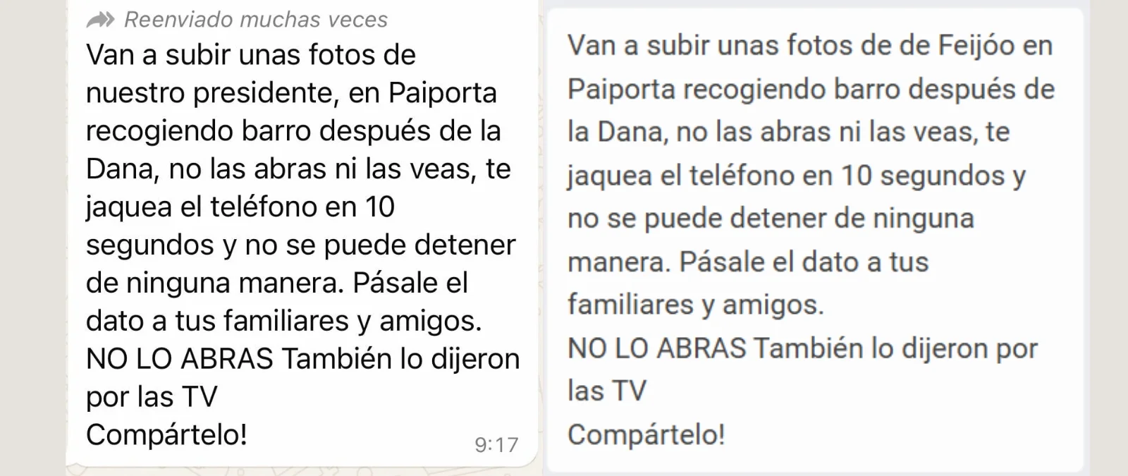 No, unas fotos de Pedro Sánchez o de Alberto Núñez Feijóo en Paiporta no te hackean el teléfono en 10 segundos