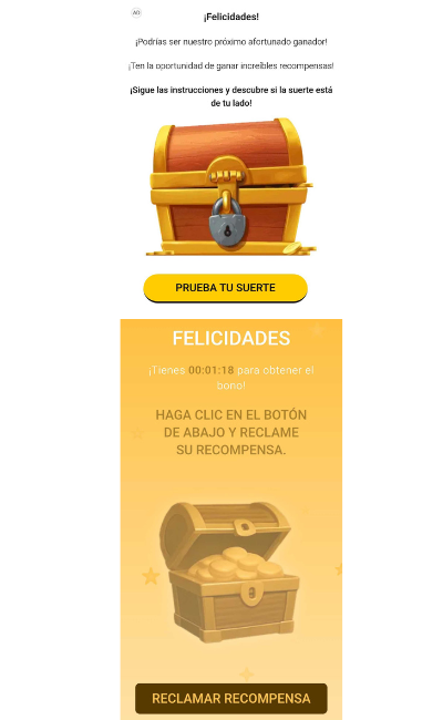 Otros botones redirigen a distintas webs para obtener supuestas recompensas tocando un cofre. Después, te invitan a unirte a un canal de Telegram de juego online que solicita 150 euros para poder entrar. En Maldita.es ya hemos advertido de otros timos que se comparten a través de canales de Telegram.
