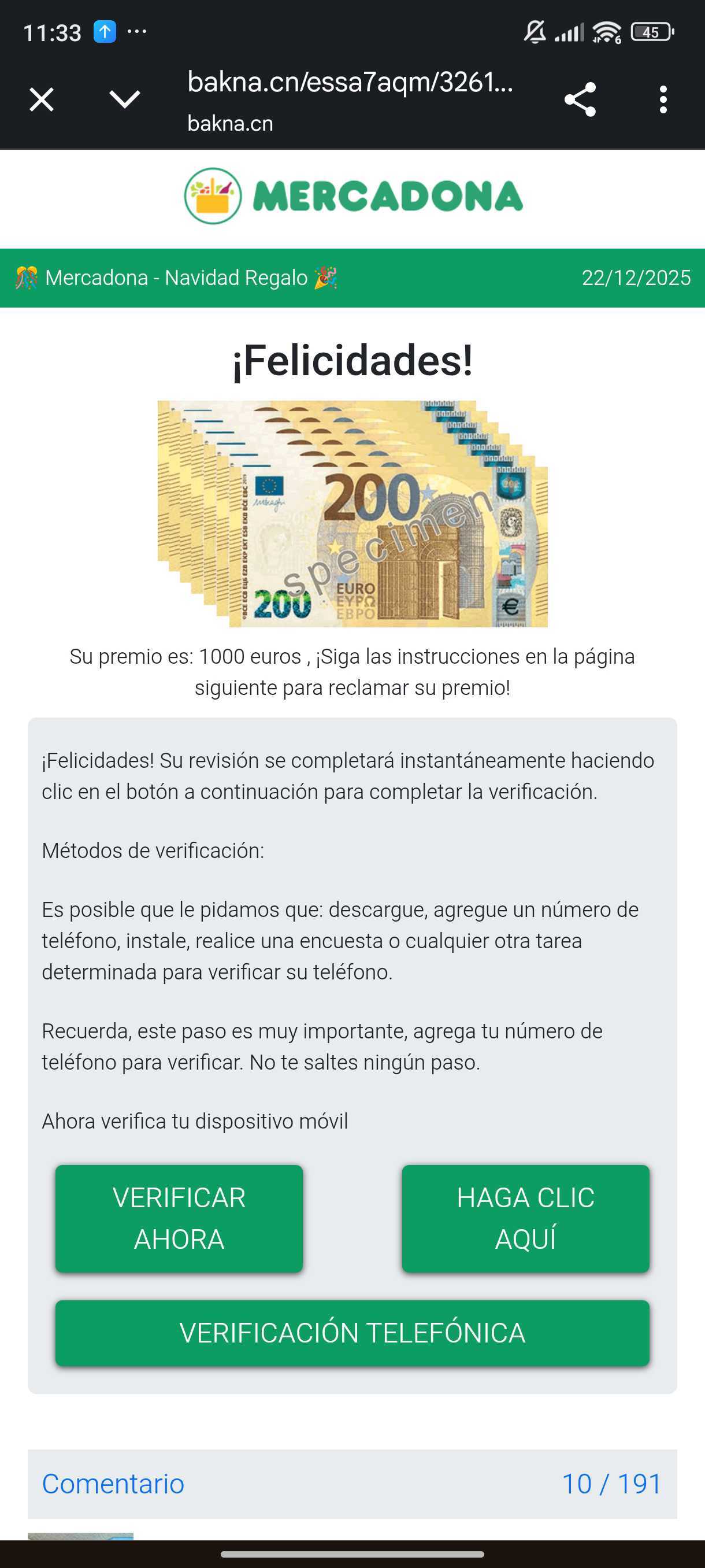 El timo del supuesto regalo de 1.000 euros por Navidad de Mercadona